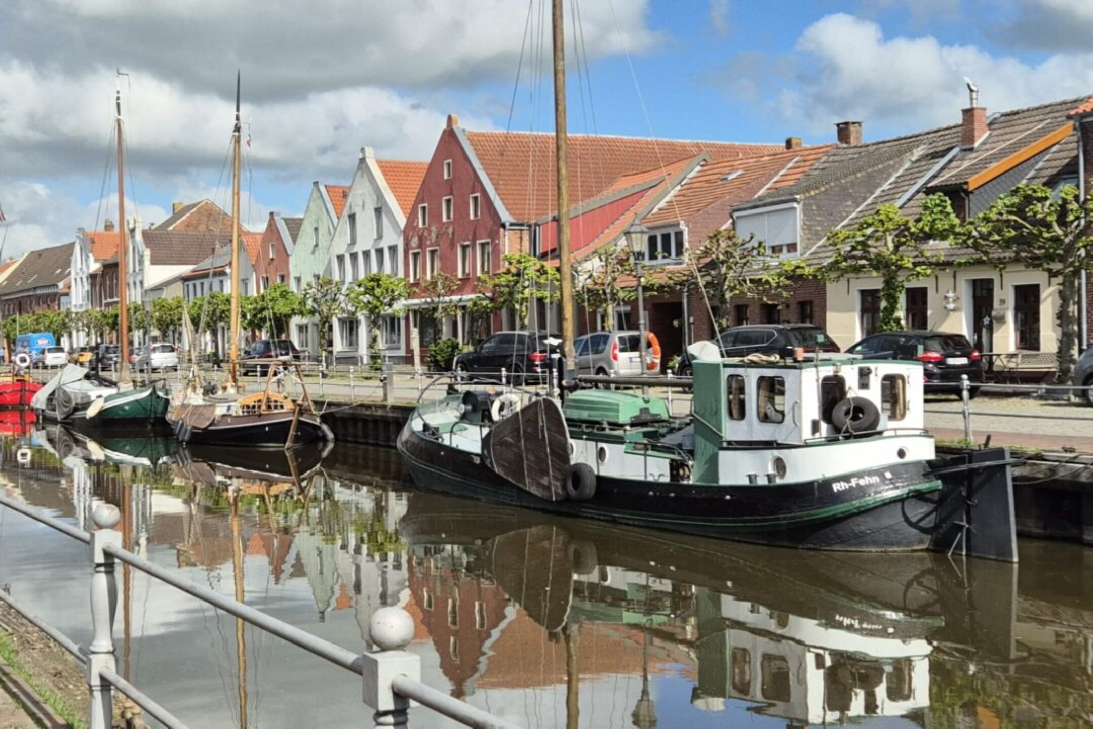 Die Ferienwohnung Tjalk befindet sich in Weener in unserem Hafenkabinett, einem neu renovierten Wohnobjekt direkt am Alten Hafen. Sie hat 2 Schlafzimmer und eine Schlafcouch, Wohnzimmer/Küche, Bad mit Dusche/WC